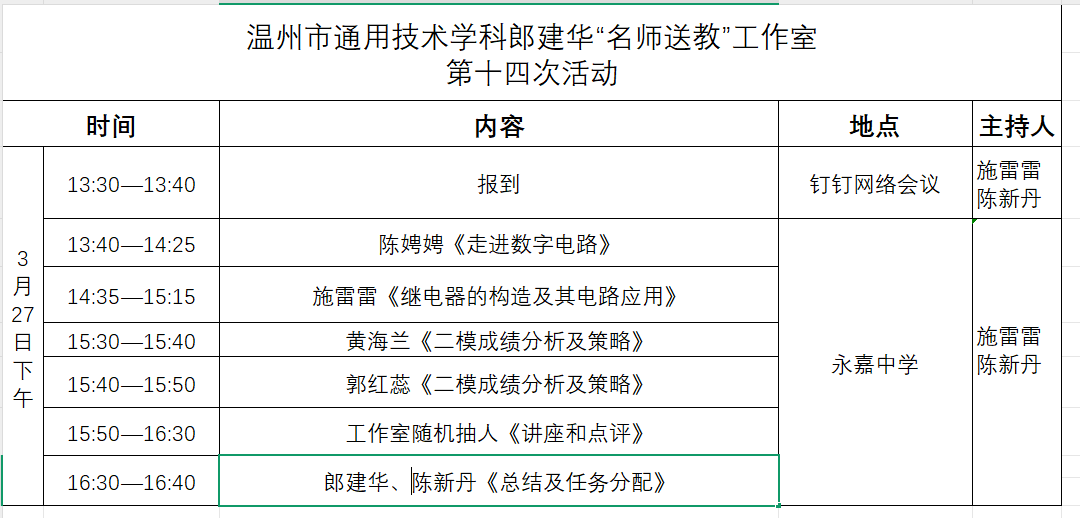 关于举行温州市郎建华“名师送教”工作室第十四次活动的通知