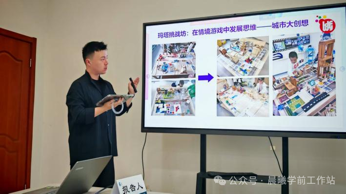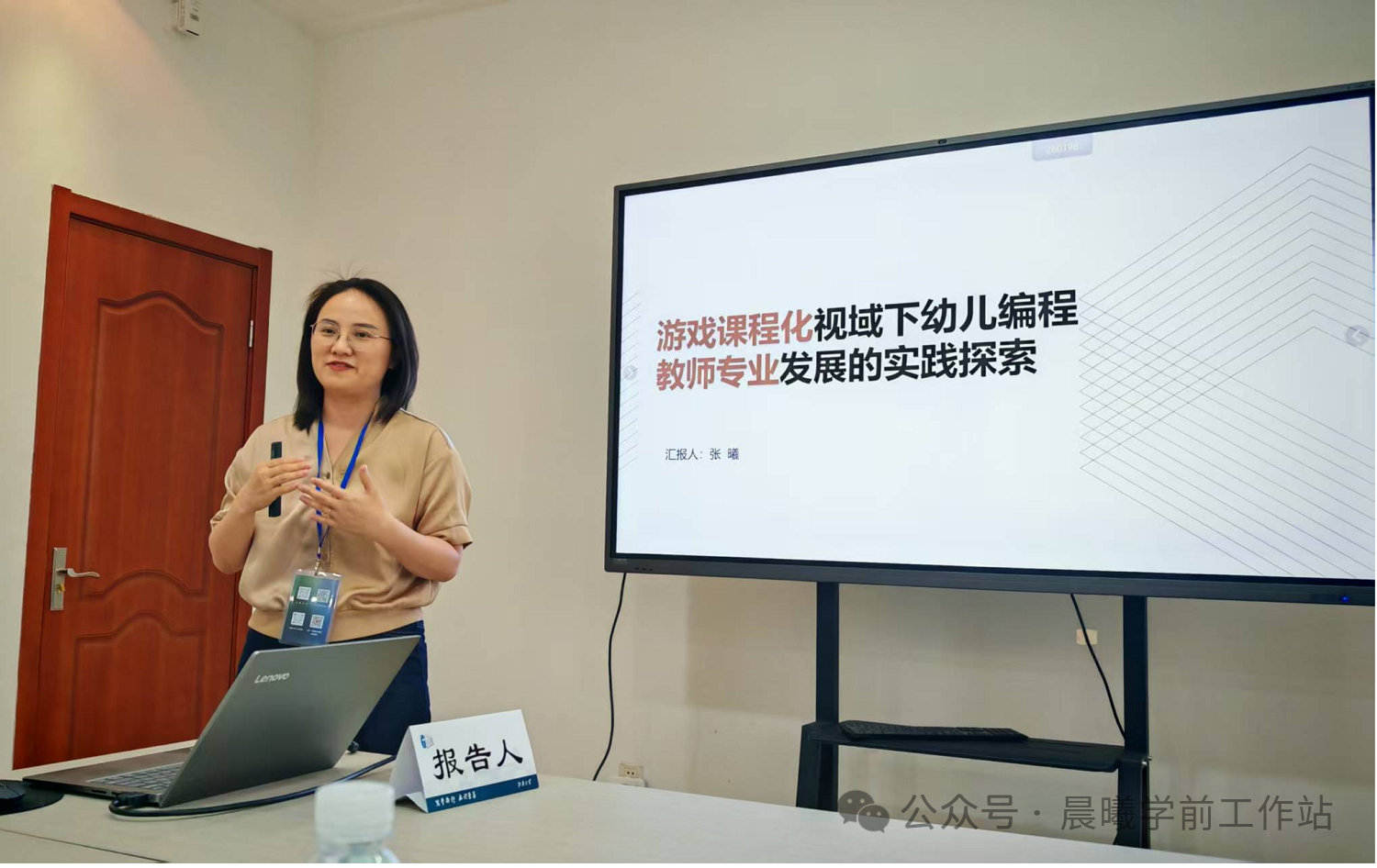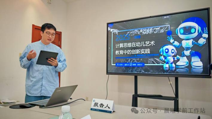 工作站成员虞哲夫老师以《计算思维在幼儿艺术教育中的创新实践》为主题,结合一线教学经验,深入探讨了计算思维在幼儿艺术教育中的实践应用。虞老师以“超级马里奥”音乐律动课程为例,生动展示了计算思维核心概念如何在艺术活动中自然融入。研究发现,音乐律动的节奏模式、动作编排与程序化思维存在高度契合点,能够有效帮助幼儿在游戏化学习中建立计算思维的初步概念。虞老师还总结了该类课程的实施经验,提出了优化策略,并探讨了其向其他艺术领域拓展的可能性,为幼儿园教师提供了宝贵的实践指导。