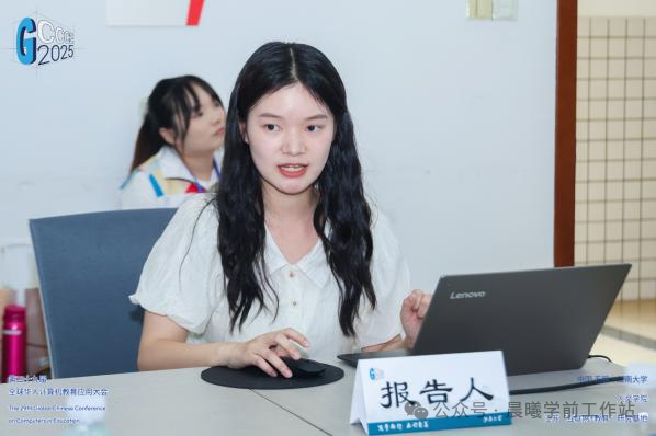 在W06工作坊——“迎接未来的挑战:智能时代儿童计算思维与编程教育”中,张曦导师以《游戏课程化视域下幼儿编程教育教师专业发展的实践探索》为主题,进行了深入的研究汇报。张曦导师基于游戏课程化的视角,剖析了幼儿编程教育中教师专业发展的实践路径。针对当前幼儿园教师编程教育理念滞后、技术操作不熟及课程游戏性设计能力薄弱等问题,构建了“理念-技术-设计”三位一体的教师能力发展模型。通过分层晋级研训机制、名师示范课例研讨及专家主导的项目研究,系统地提升了教师在游戏化编程中的教学设计和技术应用能力,为幼儿编程教育的未来发展指明了方向。