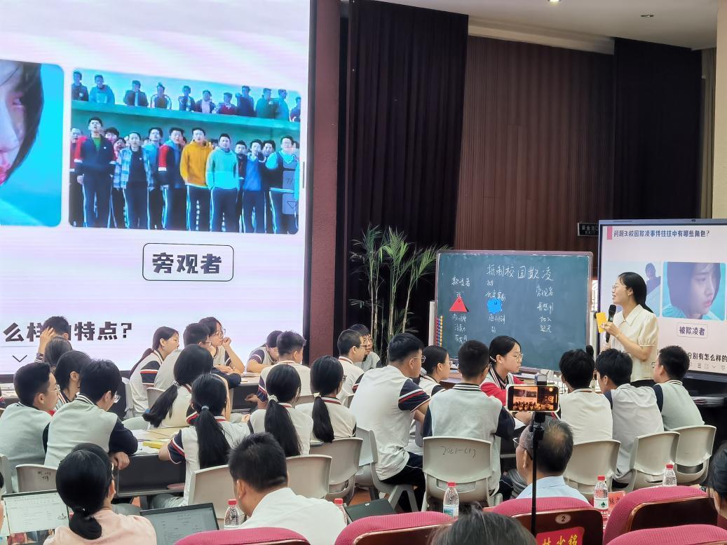 首先,瑞安市塘下职业中等专业学校教师、浙江省教坛新秀张瑞祥带来八年级心理健康课例《向欺人者说 “不 ”,为 ‘凌 ’雨者撑伞》。张老师以情景模拟、 角色扮演等互动形式, 引导学生识别校园欺凌行为,学习自我保护与互助策略。