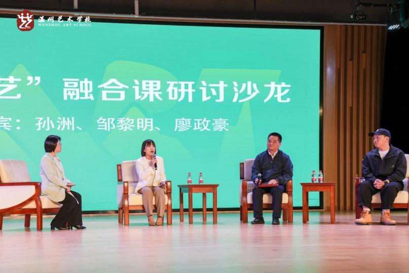 在我校心理老师陈建东的主持下,温州市学生成长指导中心负责人孙洲、温州市教育教学研究院美术教研员邹黎明、温州市少年艺术学校表演专业教师廖政豪三位嘉宾就艺术与心理结合的方式、提升学生心理健康等问题进行了深入探讨和交流。在话题分享环节,嘉宾们针对艺术在触动人心、促进心理健康中的独特优势、未来发展趋势、课程内容优化等问题提出了见解。